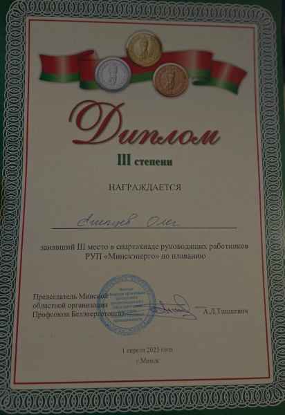 Першы намеснік дырэктара-галоўны інжынер філіяла» Энергазбыт " Егіпцаў Алег паказаў годны вынік у асабістым заліку па плаванні і заняў ганаровае трэцяе месца. Віншуем усіх пераможцаў!