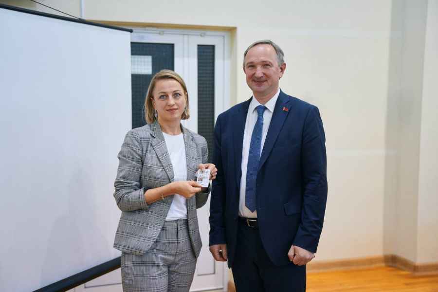 Таксама падчас сустрэчы супрацоўнікам філіяла былі ўручаны членскія білеты Беларускай партыі "Белая Русь".