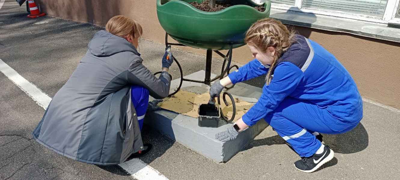 Сотрудники трудились не только на своих рабочих местах, часть коллектива занималась наведением порядка и благоустройством территории.