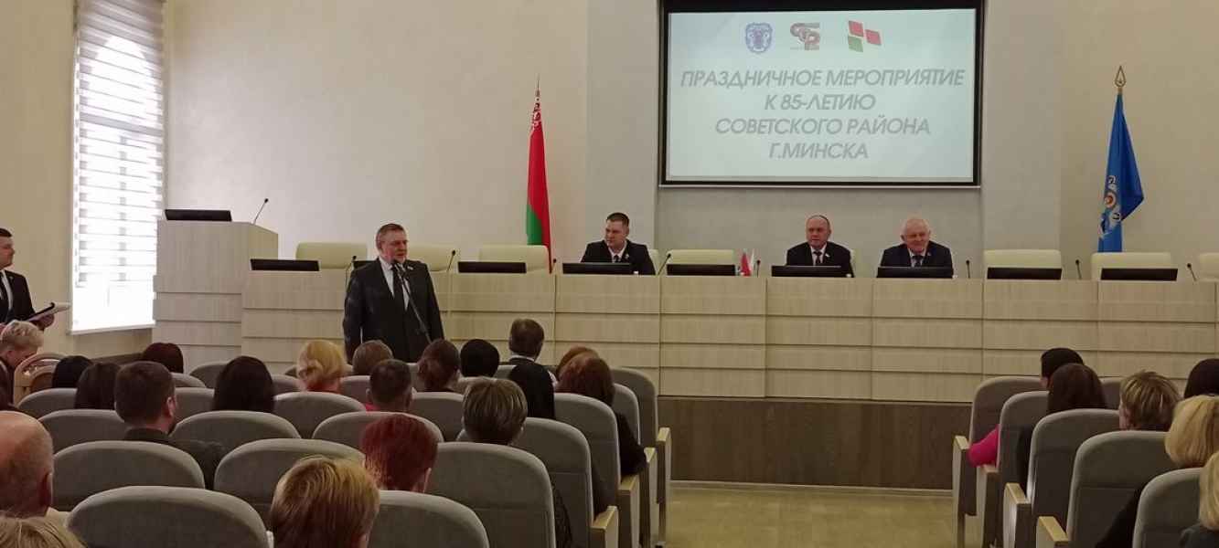 В торжественном собрании принял участие глава администрации Советского района г. Минска Хильман Сергей Анатольевич, который тепло поздравил присутствующих с юбилеем Советского района нашей столицы. В свою очередь Сергей Анатольевич отметил значимость вклада каждого члена РОО «Белая Русь» в становление общественного объединения и выразил надежду на его дальнейшее развитие и процветание на благо страны и белорусского народа. Также приглашёнными гостями были председатель Постоянной комиссии по правам человека, национальным отношениям и средствам массовой информации Давыдько Геннадий Бронеславович, депутат Палаты представителей Национального собрания Республики Беларусь седьмого созыва - Дик Сергей Константинович, председатель районной организации «Белая Русь» - Кудин Вадим Геннадьевич.