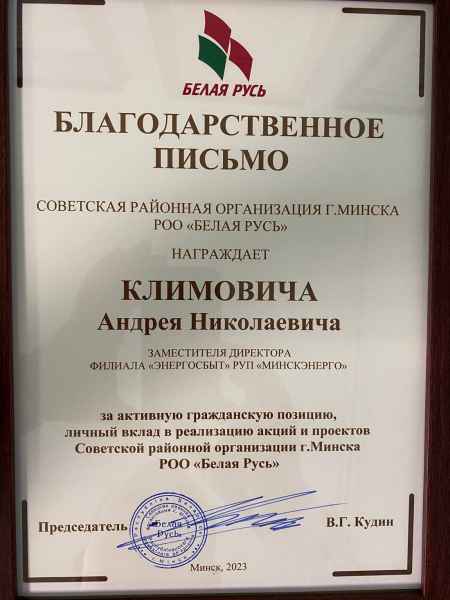 Из числа сотрудников филиала «Энергосбыт» РУП «Минскэнерго» членские билеты получили Шевко В.А. – ведущий специалист отдела договорной и социальной работы, Задоренко А.С. – ведущий инженер по организации эксплуатации и ремонту зданий и сооружений, Катницкий А.В. – заместитель начальника отдела обеспечения деятельности филиала, Ровбуть А.А.- инженер по работе с потребителями энергии Минского отделения по сбыту тепловой энергии, Сидоревич О.П. - специалист по связям с общественностью.